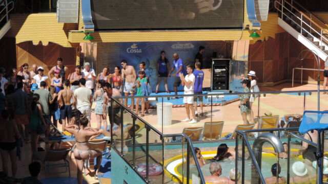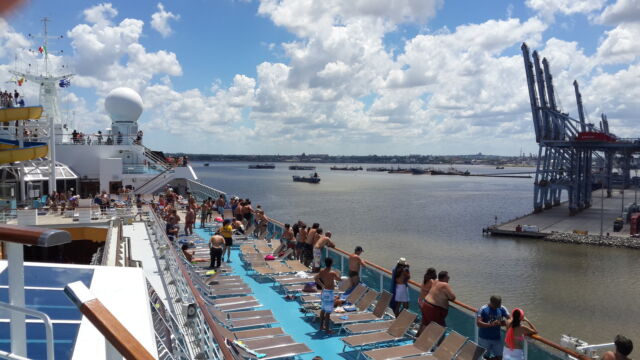 Al embarcar, lo primero que hice fue ir hasta el camarote, ver que todo funcione y luego empecé a recorrer el barco para tratar de ubicarme. Recordar y memorizar mi número de camarote, ver dónde estaba ubicado, fue mi primera tarea y algo que para mi fue importante y te recomiendo, es conocer a la persona que hará la limpieza del camarote, porque esto te ayudará a qué cuando necesites algo, ya sabrás a quien acudir. ¡Ah! no quiero olvidarme de comentarte el tema de los adaptadores, fíjate los enchufes del camarote, en mi caso fue necesario utilizar adoptadores europeos. En este crucero puntualmente te entregaban 1 adaptador por camarote y lo debías retornar a las horas. Entonces, cargar celulares, cámaras de fotos, resultaba de lo más engorroso. Por eso si podés, llevá los tuyos y que sean varios. Otro tema es que, cómo las maletas llegan más tarde, mi recomendación es la siguiente: si querés disfrutar de la piscina antes de salir, llevá en tu bolso de mano tu traje de baño y mientras esperas a que el barco zarpe del puerto podrás darte más de un chapuzón en la piscina, te garantizo que serás la envidia de muchos. Otro tema importante: las fotos que podés tomar antes de salir serán geniales, sobre todo de los lugares comunes porque no habrá tanta gente por ahí.