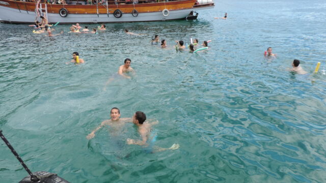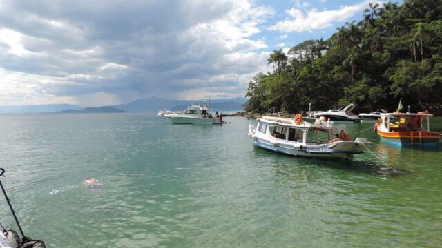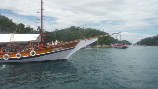 Como éramos un grupo tan grande preferimos no tomar ninguna excursión desde el barco, siempre lo organizábamos por nuestra cuenta. Decidimos bajar en Ilha Grande y allí contratar algunas de las tantas lanchas que hay en la costa, lanchas que esperan a los turistas para llevarlos a pasear. Un detalle: lo tenés que hacer rápido porque sino te quedarás sin embarcación. Después de idas y vueltas y pagando un buen precio encontramos la nuestra. Subimos a bordo y empezamos a visitar las pequeñas islas de este lindo lugar. Esta isla está rodeada de pequeños pueblos pesqueros cuya belleza y tesoro son sus paisajes. Increíbles. Poder navegar por este lugar, nadar en medio de ese mar, parar en una de las islas y tomar alguna que otra cerveza y caipirinha sentados en la embarcación, fue espectacular. Y como dato te cuento que Angra dos Reis está rodeada por 365 islas, es el paraíso para los buceadores. Te confieso que a mi me hubiese gustado quedarme, y pensaba…es 1 isla para cada día del año, pero Alfredo no estaba conmigo, así que decidí no quedarme ahí…