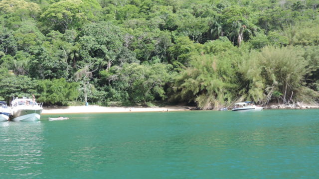 Como éramos un grupo tan grande preferimos no tomar ninguna excursión desde el barco, siempre lo organizábamos por nuestra cuenta. Decidimos bajar en Ilha Grande y allí contratar algunas de las tantas lanchas que hay en la costa, lanchas que esperan a los turistas para llevarlos a pasear. Un detalle: lo tenés que hacer rápido porque sino te quedarás sin embarcación. Después de idas y vueltas y pagando un buen precio encontramos la nuestra. Subimos a bordo y empezamos a visitar las pequeñas islas de este lindo lugar. Esta isla está rodeada de pequeños pueblos pesqueros cuya belleza y tesoro son sus paisajes. Increíbles. Poder navegar por este lugar, nadar en medio de ese mar, parar en una de las islas y tomar alguna que otra cerveza y caipirinha sentados en la embarcación, fue espectacular. Y como dato te cuento que Angra dos Reis está rodeada por 365 islas, es el paraíso para los buceadores. Te confieso que a mi me hubiese gustado quedarme, y pensaba…es 1 isla para cada día del año, pero Alfredo no estaba conmigo, así que decidí no quedarme ahí…