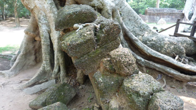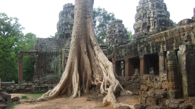 El nombre del árbol que invade casi todo el Templo Ta Prohm es «Spung», lo cubre casi en su totalidad y además lo sostiene.