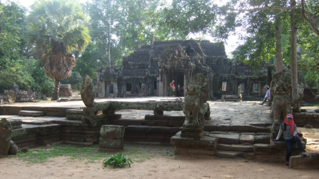 Ya felices por haber estado en Angkor Wat nuestro guía nos comenta que tenemos otro lugar más por conocer y nos lleva hacia Preah Khan (en camboyano ប្រាសាទព្រះខ័ន; «Espada real») . Construido por el rey Jayavarman VII es un lugar parecido a Ta Prohm, cercado por torres y corredores estrechos, pero este lugar estaba en mejor estado de conservación. En su origen fue un templo budista.
