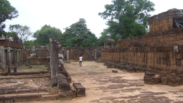 Es sencillo pero imponente, con sus esquinas protegidas por esculturas de elefantes. Basta con cerrar los ojos e imaginar todo este lugar rodeado de agua como en la época de su creación. A este templo, nos contaba nuestro guía, se llegaba en barcas porque se encontraba en una pequeña isla en medio del Baray del Este, era una gran masa de agua (2 por 7 kilómetros) que lo rodeaba alimentado por el río Siem Reap. ¡Debe de haber sido memorable!