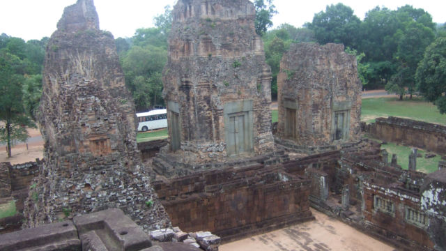 A 12 metros de altura está la plataforma superior del templo Pre Rup y ofrece una vista de 360 grados desde allí podrás ver todo el bosque que rodea al templo-montaña.