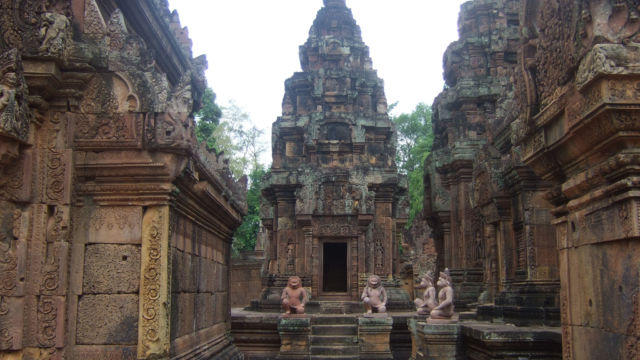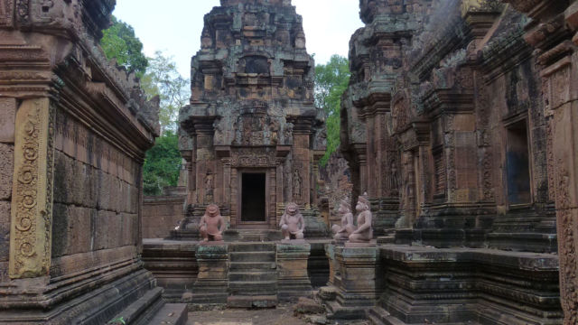 Dedicado al dios Shiva, se comenzó a construir en el año 967. Su característica principal, según cuentan, es que fue un templo construido por mujeres. Por eso también se lo conoce con el nombre de «Ciudadela de las Mujeres». Es una joya del arte «Jemer«. Es un templo pequeño y lo recorrerás muy rápido. Por eso mi recomendación es que lo hagas a paso lento y deteniéndote a admirar todos sus detalles. Ve a conocerlo por la mañana, bien temprano, para que no encuentres muchos turistas caminado por allí. Comparto con vos mis fotos de este bello lugar…
