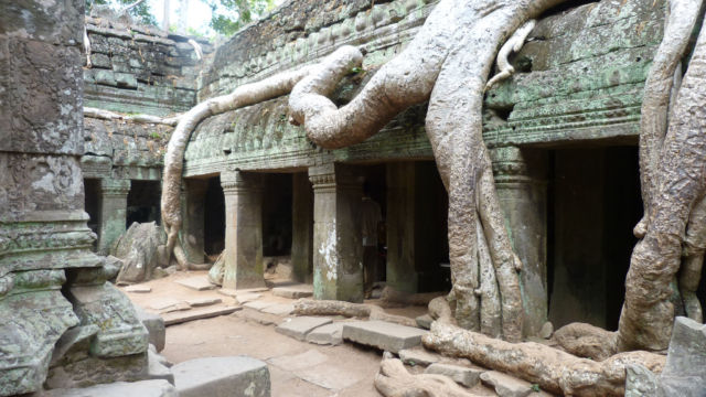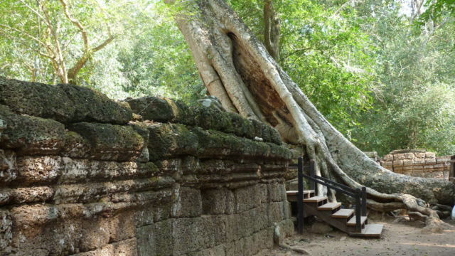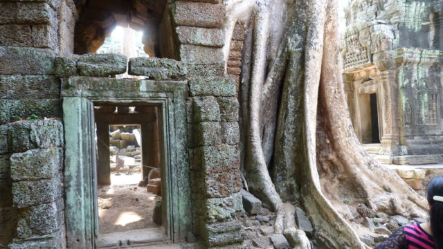 La naturaleza está presente en este templo. No se pueden quitar esos árboles porque, si lo hacen, todo el templo se desmorona. La naturaleza ya forma parte de él. Por eso los restauradores optaron por no sacarlos. Mi consejo es que lo visites por la mañana, bien temprano, para poder andar más tranquilamente por allí.