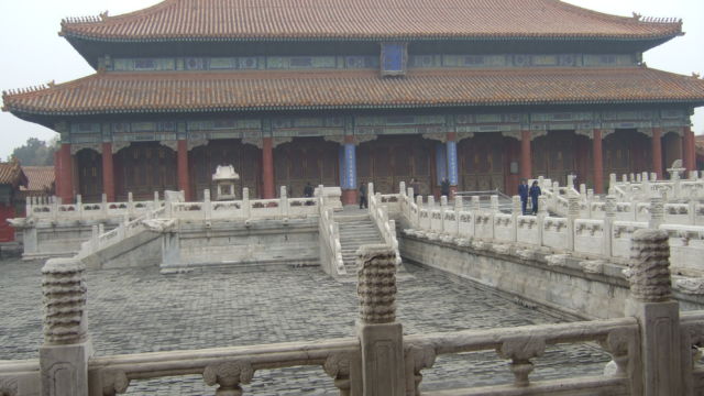 Los salones más impresionantes de la Ciudad Prohibida son los ubicados en el Palacio de las Tres Salas, lugar donde se celebraban los actos públicos del emperador. A estas tres salas se accede tras cruzar la Puerta del Mediodía, allí se encuentra una terraza triple con unas balaustradas y escalinatas de mármol increíbles y no nos olvidemos de las rampas, también de mármol, decoradas con dragones imperiales. Los salones son los siguientes: