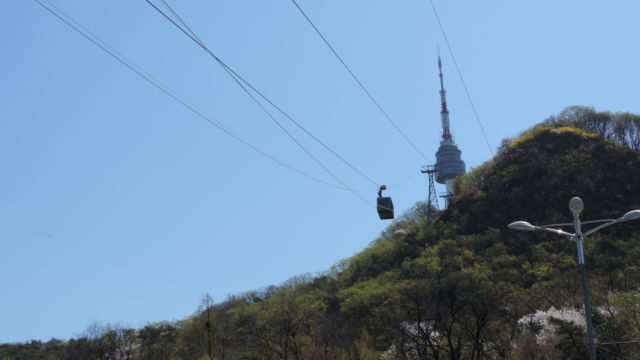 *Salida Nº3 de la Estación de Myeong-dong de la línea 4, caminar hacia el Teleféfico de Namsan (10 minutos) -> Ir a la Torre N en teleférico (3 minutos).