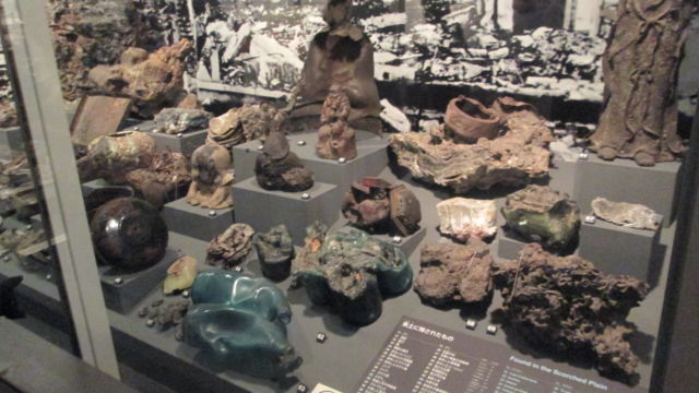 Llegó el momento de ingresar al Museo Conmemorativo de la Paz de Hiroshima. Muchos de nuestros compañeros de viaje desistieron y no quisieron ingresar. Nosotros sí lo hicimos, a pesar del dolor que sabíamos nos podía generar. Lo primero que vimos fue una maqueta en donde se mostraba toda la zona de Hiroshima: el antes y el después de la bomba, esto demuestra a las claras cómo fue el desenlace final, sobran mis palabras… mirá estas fotos.