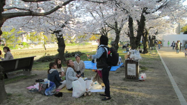 Vamos terminando nuestro relato de este lugar pero antes les queremos comentar lo que vivimos cuando salimos del Museo. Ya habíamos visto que los cerezos estaban en flor pero nos alegró descubrir que algunos japoneses estaban festejando el «sakura». Esto nos enseño que la vida, a pesar de todo lo que se pueda sufrir, sigue y se debe poner lo mejor de nosotros para poder sobrevivir a cualquier dolor.