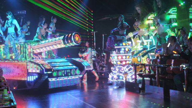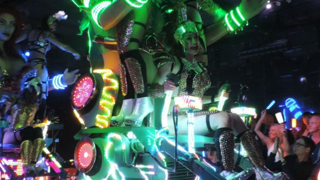 La música fuerte, bien estridente, luces a full, chicas ligeras de ropas y muy maquilladas y seudos robots por donde mirabas!!!