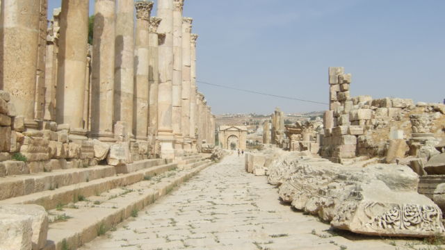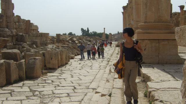 Como ya te comenté fue bajo el gobierno de los emperadores romanos en el S.II que Jerash tuvo su mayor desarrollo urbano. Su traza es un buen ejemplo de las pautas que adoptaron las ciudades romanas imperiales planeadas a partir de una vía principal el «Cardo Máximo» y otras dos vías que la cortaban perpendiculamente, las Decumanus. Aquí mi registro fotográfico …