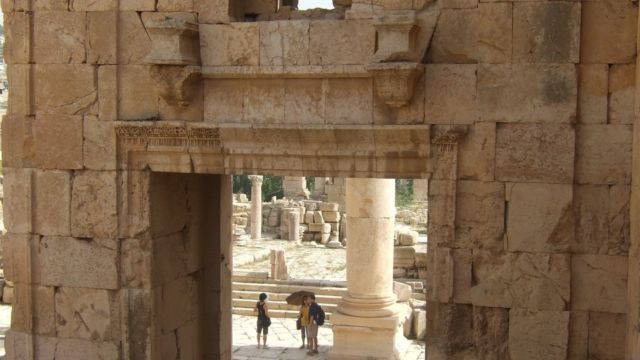 Descubrir en el recorrido por Jerash una de sus puertas, exactamente la «Puerta Sur«me resultó imponente… porque es casi perfecta.