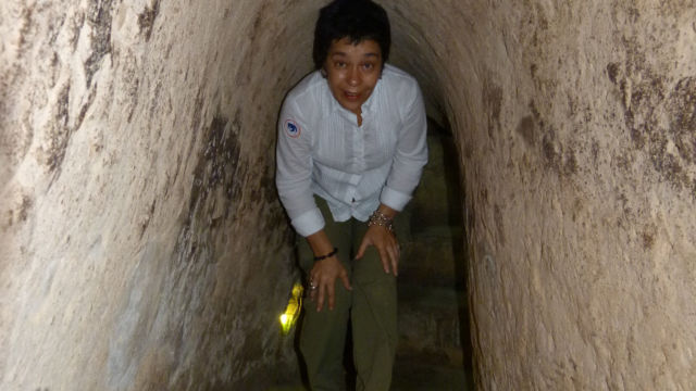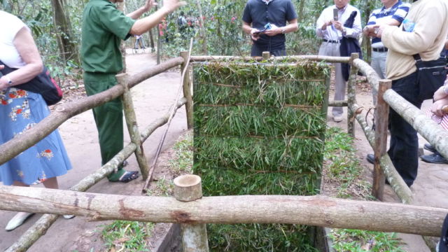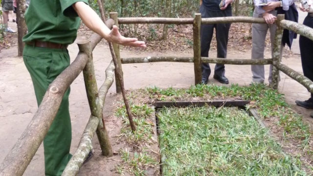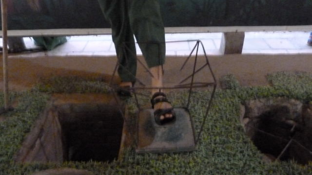Y mientras caminábamos por ahí pensaba: ¿cómo habrá sido la vida en este lugar, tanto del lado de los vietnamitas como para los estadounidenses…? Los vietnamitas viviendo en condiciones infrahumanas podían, después de realizar los ataques, desaparecer frente a la vista de los americanos haciéndolos entrar en un punto tal de «desesperación» que ellos llegaron a creer que los ataques eran realizados por «fantasmas». ¡Todo era una locura! Los estadounidenses descubrieron estos túneles de casualidad… Fue el sargento Stewart Green que, sin quererlo, se sentó sobre una de las entradas y se lastimó con un clavo que había en esa tapa, él había pensado que lo había sido picado por un escorpión! Grande fue la sorpresa cuando descubrieron estos escondites… Ahora sí podían entender lo que pasaba cuando eran atacados.